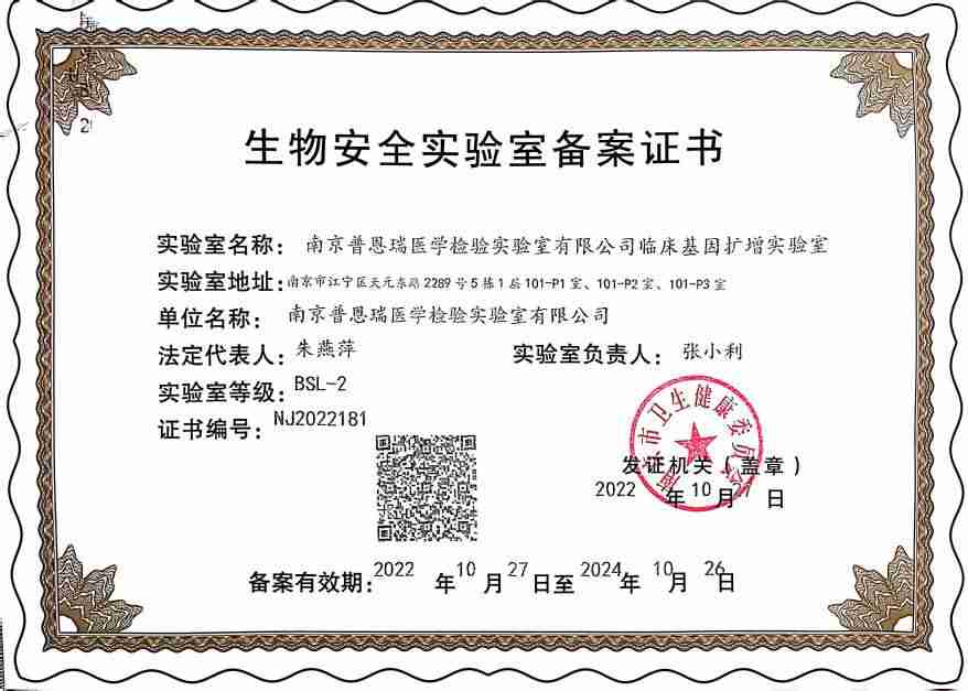 生物安全實(shí)驗(yàn)室備案證書(shū)