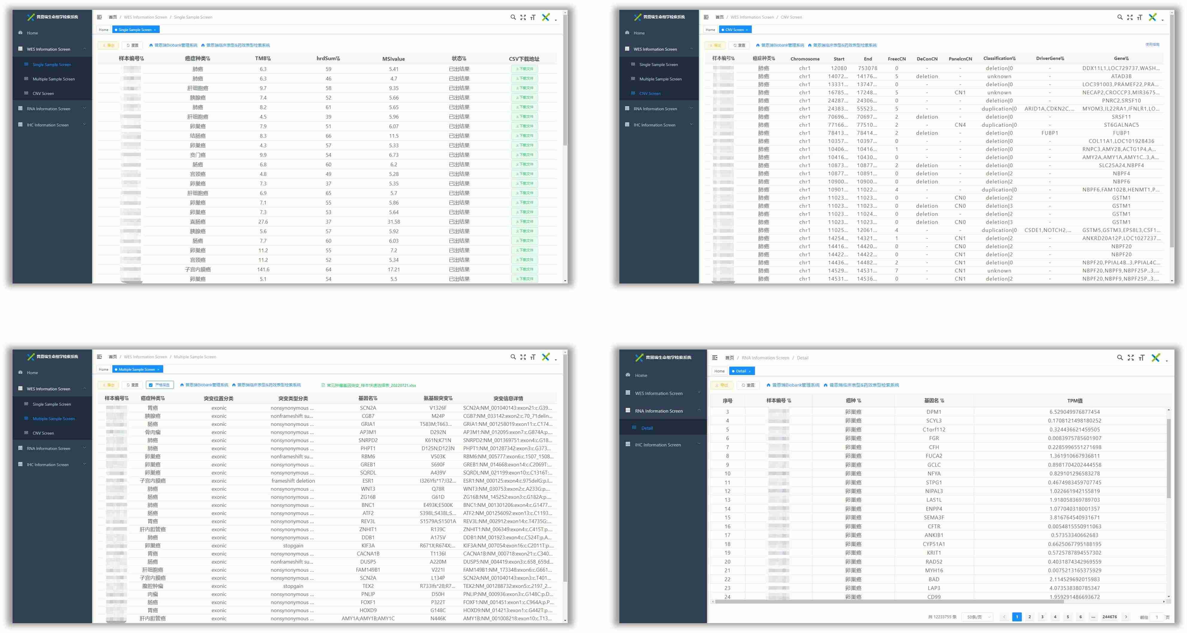 數(shù)據(jù)庫具備藥效學(xué)檢測數(shù)據(jù)檢索查詢系統(tǒng)、生物樣本管理系統(tǒng)、生命組學(xué)檢索系統(tǒng)、生物信息管理系統(tǒng)和客戶服務(wù)系統(tǒng)等多種數(shù)據(jù)信息的錄入、管理、查詢和協(xié)助系統(tǒng),已收錄超16萬份腫瘤活組織樣本的保藏信息以及對應(yīng)的個體表征信息超10萬條、基因組學(xué)信息近4000萬條和超過15000個臨床常用藥物方案的藥效結(jié)果。